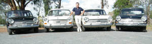 1800 identity Herbert Simpfendorfer with four of his self-restored cars which were all originally found in paddocks - and in one case, in a river bed.