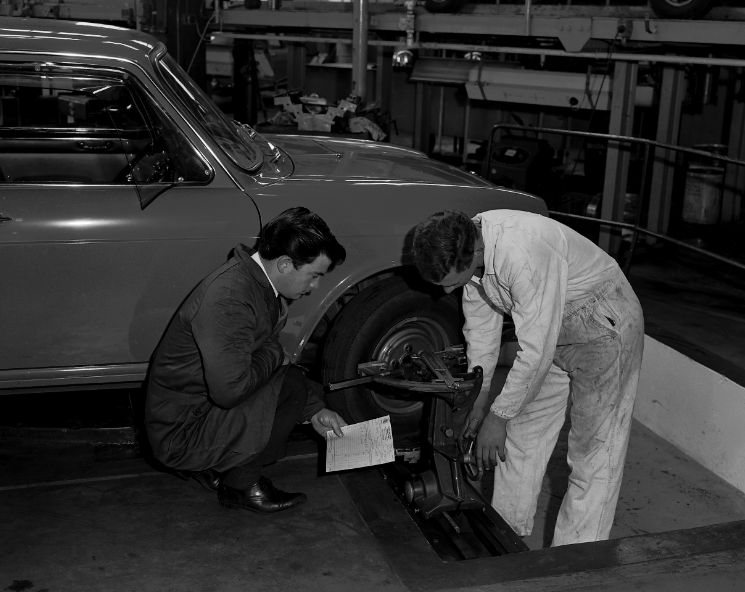 The photo below shows completed cars being driven under their own power at the end of C track at Victoria Park, Zetland and then subsequently loaded on a transporter for delivery to dealers.