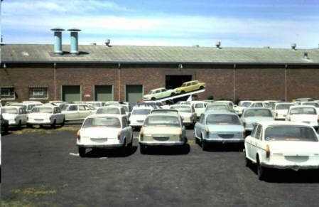 Cars being loaded at the Victoria Park for distribution to dealers, October 1970. (Photo courtesy of Denis Robinson)